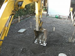 外部は本日より、外構工事に入りました。 高さ確認後土を掘りその後に砕石敷きまで本日作業を行いました。