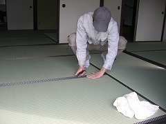 本日畳を敷きました。 畳屋さんに質問し敷き込みで気をつける事は?と聴きますと、畳屋さん曰く、表の部分にキズをつけない事と、床高の調整が重要との返答でした。帰りに畳を拭き取ってもらい作業完了しました。お疲れ様です。