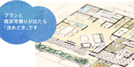間取り図(プラン)が描きあがって、概算の費用見積りが出たときが、ひとつの節目です。判断材料は出揃っているはずなので、さあ、どこに依頼するか。